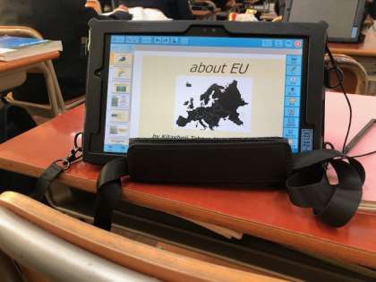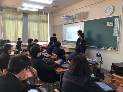 タブレットで作成したスライドを班ごとに合わせて、発表しました。