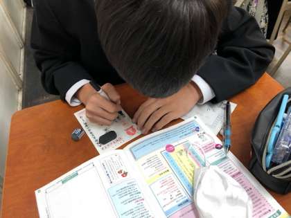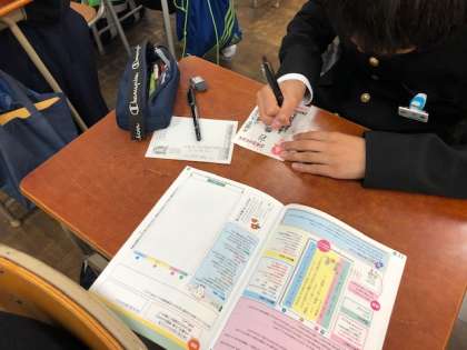 お手本を参考にしながら、この1年お世話になった先生に心を込めて書きあげました。