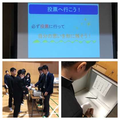 続いて、選挙管理委員会の方に選挙の話をしていただき最後には模擬投票をしました。