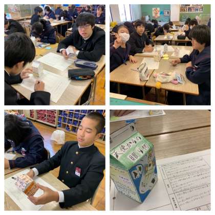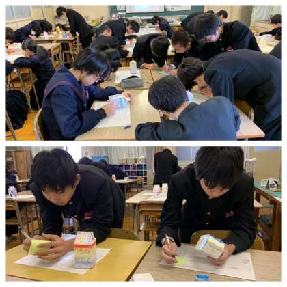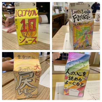 ふらっと店によったお客さんがこれ買ってみようと思うようなデザインはどのような工夫がされているのかを考え、制作した作品を鑑賞しあいました。