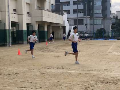 1年生男子体育の様子です。 長距離走をしています。 本時は10分間走をしました。