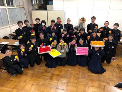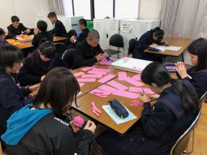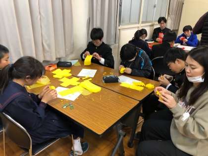 3年生が卒業式の日に胸につけるコサージュを作りました。