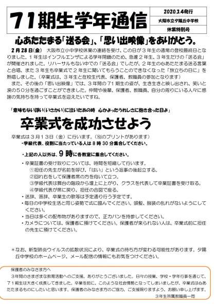 しっかりと読み、卒業式を胸を張って迎えられるようにしましょう。