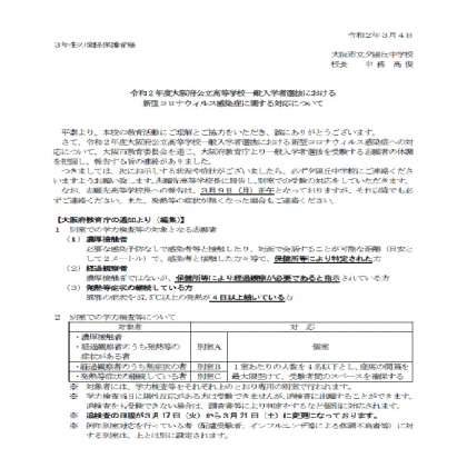 ・令和2年度大阪府公立高等学校一般入学者選抜における新型コロナウイルス感染症に関する対応について