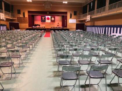 卒業生の皆さんは明日、8時45分〜9時の間に登校するようにしてください。