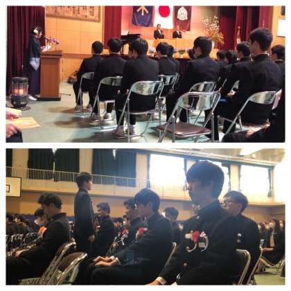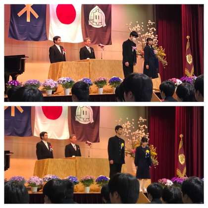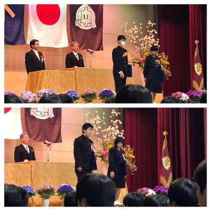 今年は時間短縮のため各クラスの学級代表がクラスの代表として卒業証書を受けとりました。