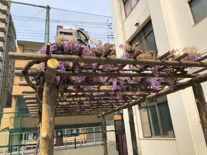 夕中の藤の花も、74期生を迎え、新たな夕中の幕開けを優しく見守ってくれているかのように、淡く綺麗な紫色の花が咲き誇っています。