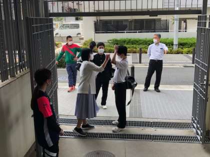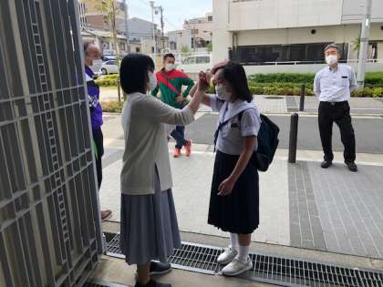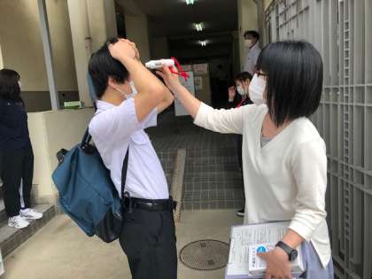 検温を忘れた生徒は通用門で検温をしてから、教室に入ります。