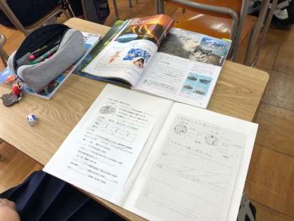 2年生理科の様子です。 地学的分野、火山活動について学習しています。