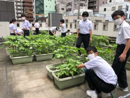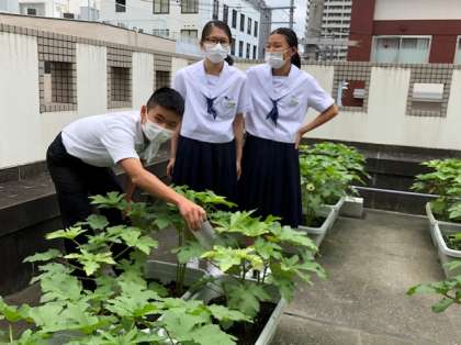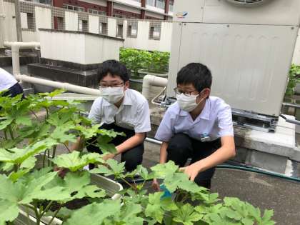 2年生みんなで水やり当番を担当して、オクラを育てていきます。