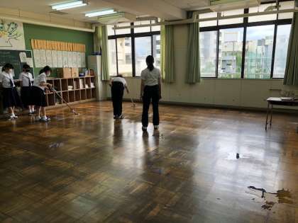 ピカピカになった床で、月曜日からまた気持ちよく学校生活を送っていきましょう。