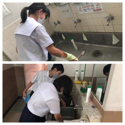 校内の手洗い場や廊下をきれいに掃除してくれました。