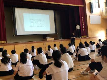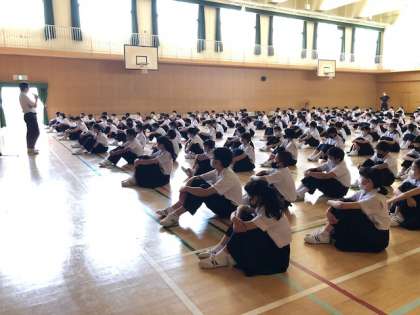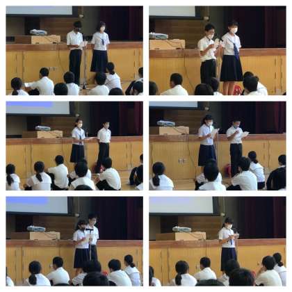1年生学年集会では、学代から各クラスの良かったところと反省点について発表、保健委員からの連絡がありました。