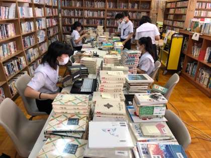 ?昨日に引き続き、今日も書道部が手伝いに来てくれました。