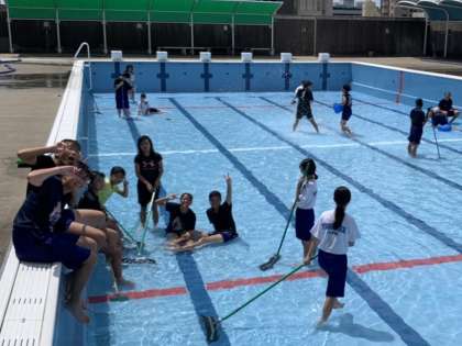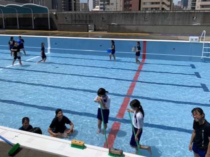 陸上部がプール掃除をしてくれました。
