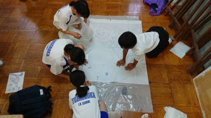 1年生学級旗作成の様子です。