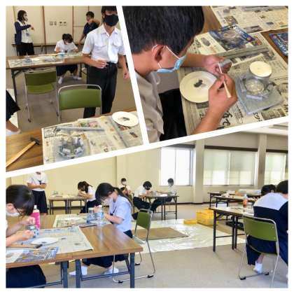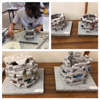 石あかり作りです。みんなが金槌で石を割る音のみが響いてます!