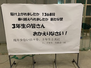 3年生は明日は10時35分から40分の間に登校です。しおりを忘れずに持ってきてください。