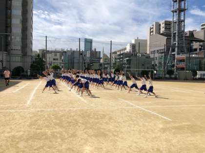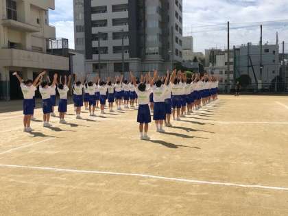 全体で魅せるパフォーマンスはラジオ体操の演技。