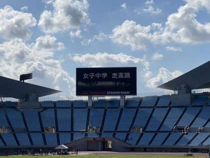 午前中にヤンマースタジアムで木南記念大会に出場し、女子走高跳に出場しました。