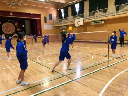 オーバーハンドパス、アンダーハンドパス、スパイクの練習をしました。