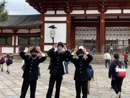 2年生は班ごとに出発して、電車に乗り、奈良に到着しました。