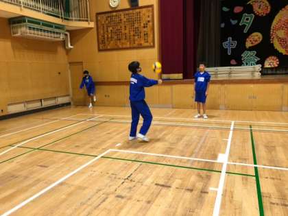 直上トスのテストをした後、ゲーム形式で練習しました。