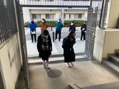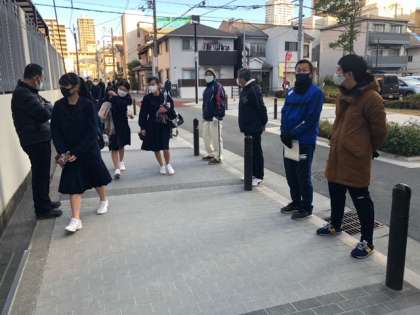 とても冷え込み、寒い朝ですが元気に登校しています。
