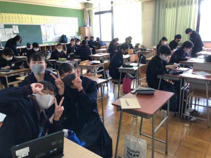 100語を目標に、3年間で学習してきた文法を取り入れて3年生らしい文章作りに挑戦です。