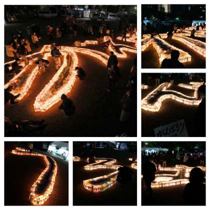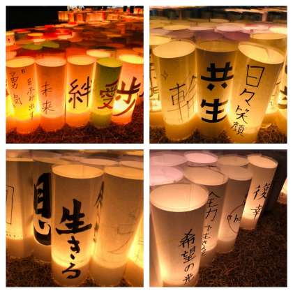 各地で追悼行事が行われ、今年の文字『がんばろう』が灯されました。