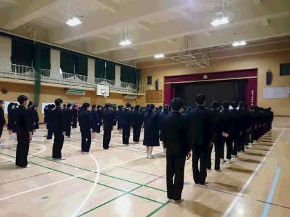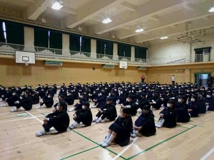 毎週木曜日は2年生の学年集会です。学級代表が前日に学級の様子を話し合い、改めていきたいことを集会で連絡します。