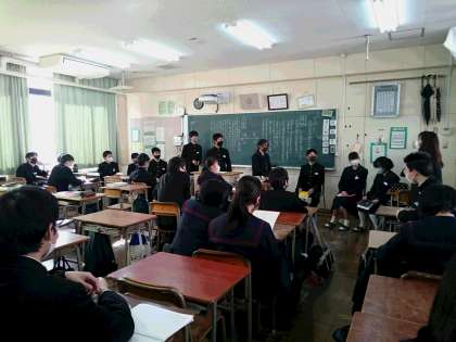 2年生の国語の授業ではディベートを行っています。今回のテーマは『人生に必要なのは愛かお金か』。和やかな雰囲気の中、笑顔で意見交換ができていました。