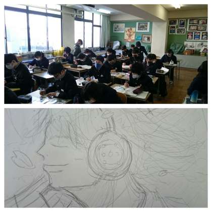 2年生の美術はスクラッチボードの作製です。今日は最初の授業。アイデアスケッチを行いました。