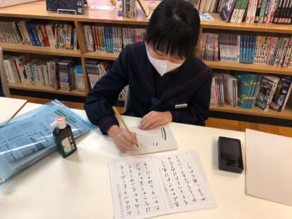 穏やかな雰囲気の中、初心に返り、筆で一文字一文字丁寧に書いています。