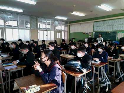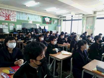 毎週月曜日の朝は、全校集会です。放送で校長先生のお話や委員会からの連絡を聞きます。