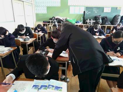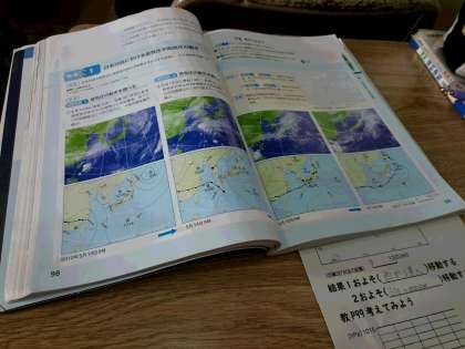 2年生理科の授業は天気図。等圧線の読み取りです。