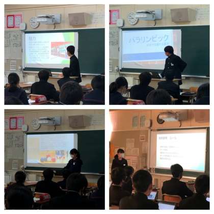 パラスポーツについて調べ、作成したパワーポイントを発表しました。