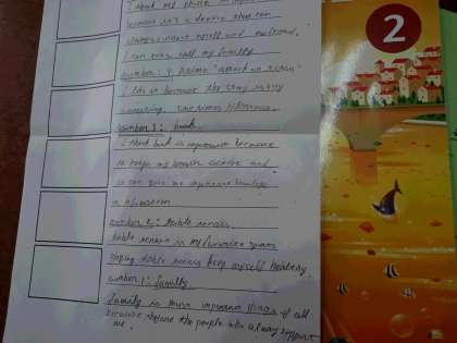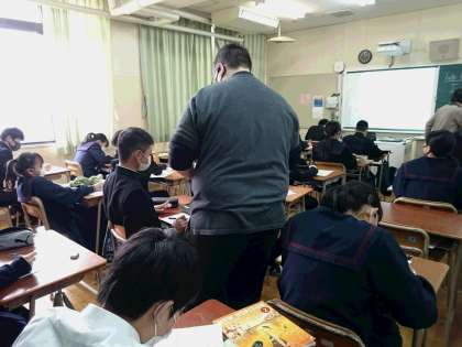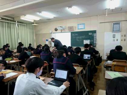 2年生の英語の授業は「Talk time In your word Top 5」。好きな物や事を英語で紹介します。しかも今回は、タブレットを使ってパワーポイント資料も作成します。発表が楽しみです。