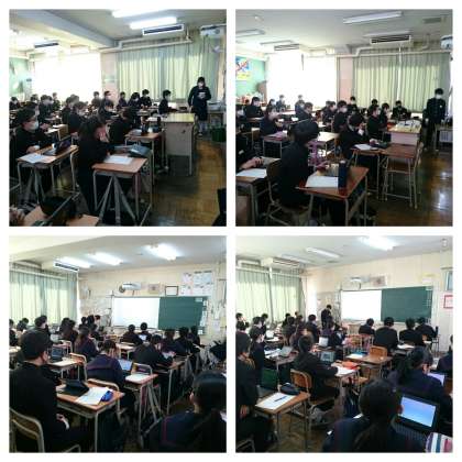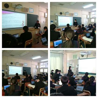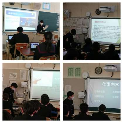 2年生は、適性検査の結果、自分に向いている職業を1つ選び、調べた内容をパワーポイント資料にまとめ、発表を行いました。様々な職業について、工夫を凝らした発表が多く、充実した発表会となりました。