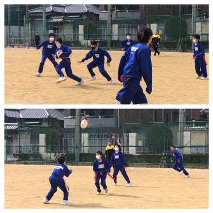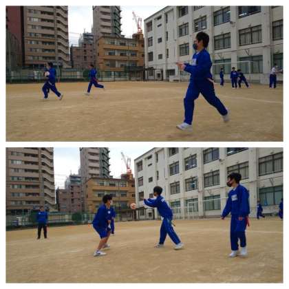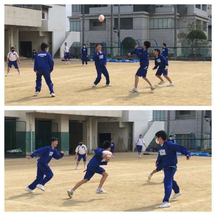 ボールを落とさないように、みんなで協力してパスを繋いでいます。