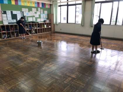 美化委員が丁寧にワックスがけをしてくれました。