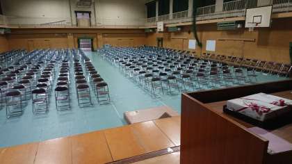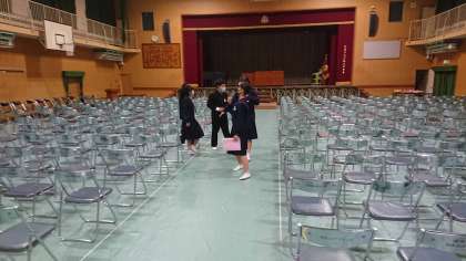 放課後、2年生が卒業式のための椅子を並べてくれました。