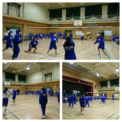 2年生は本日球技大会です。もうすぐ前半の3試合が終了。優勝目指して各クラス、力を合わせて頑張っています。