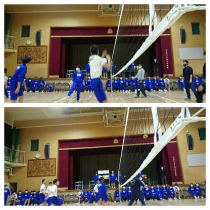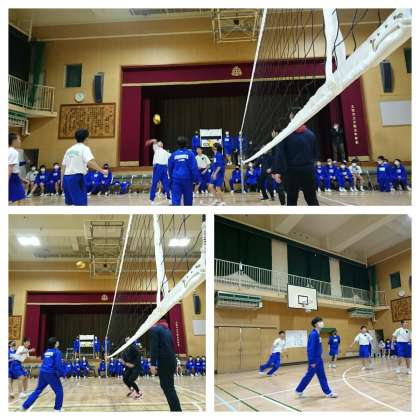 最後に男子優勝クラスの選抜チームと先生チームのエキシビションゲームです。白熱のプレーに歓声が飛び交いました。