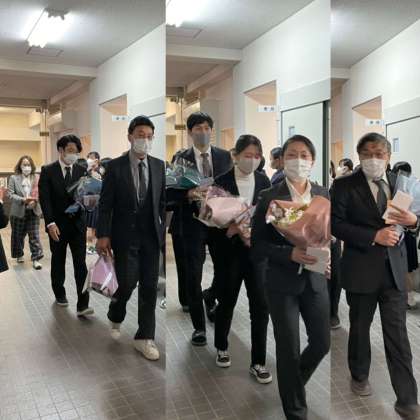 PTAの役員の方々にもお集まりいただき、夕陽丘中学校を去られる先生方から、ご挨拶がありました。