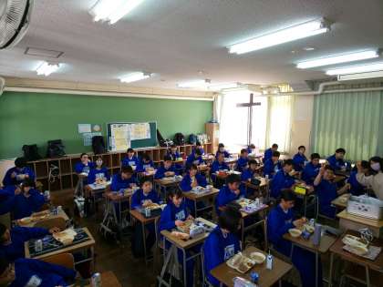 しゃべりながら食べられないのはさみしいですが、それでもみんなで食べる給食はおいしいですね。