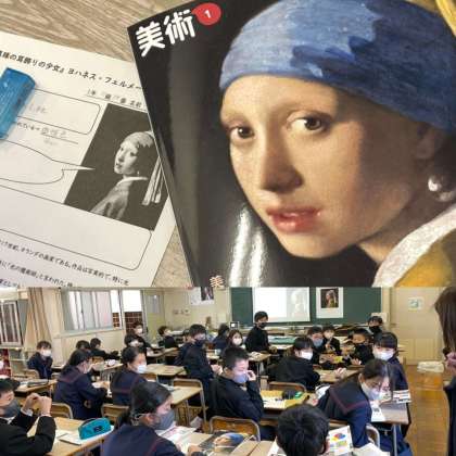 本時は一年生の美術の教科書の表紙になっている「真珠の耳飾りの少女」の絵画鑑賞を行いました。