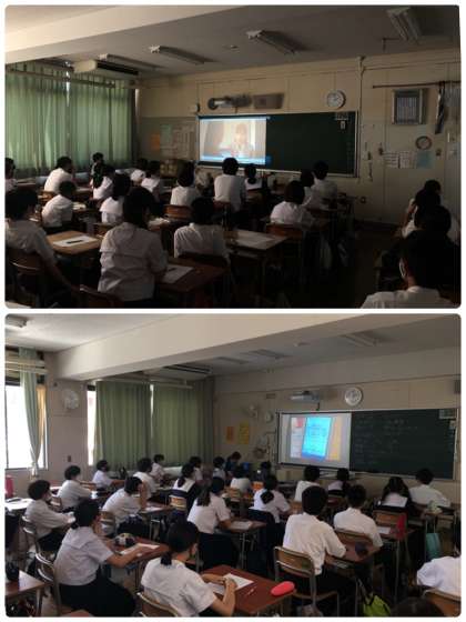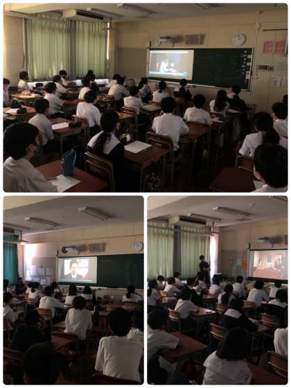 5時間目、1年生はスマートフォンやインターネットの使い方について学習しています。動画を見ているところです。