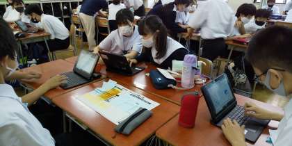 今日は、班で話し合った内容を発表するため、パワーポイントを使って発表の準備を行いました。