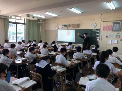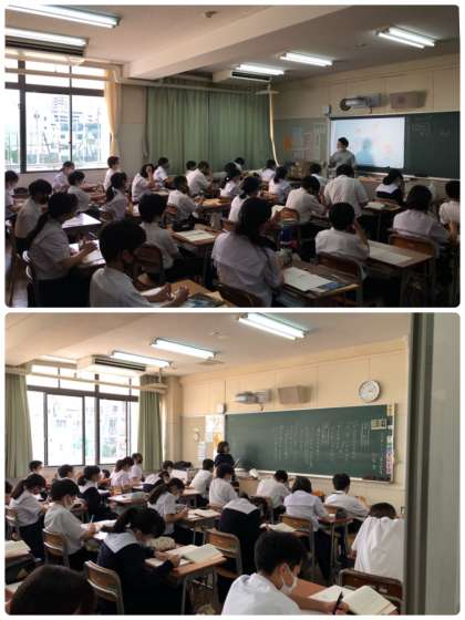 1年生の授業の様子です。英語、国語、社会の授業です。社会は教育実習生が授業をしています。